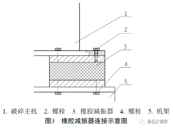 在刚性连接的基础上,破碎主机与机架之间增加橡胶减振器,可以有效减缓冲击和抑制振动传递,是有效、可靠的减振抑振和隔音降噪的好方法。橡胶减振器应用广泛、物美价廉,并向着规模化、标准化方向发展,选型和匹配更加简单,因此也是目前最有效、最主流的解决方案。受限于橡胶易老化缺点,橡胶减振器使用寿命一般在5年左右,很难覆盖设备全寿命周期。
