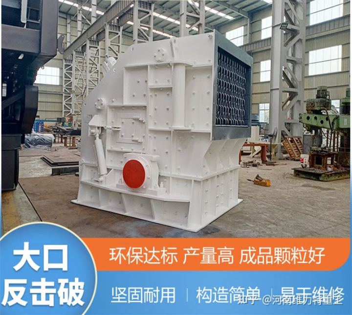 反击式破碎机结构简单、破碎比大,主要用于粉碎粒度在120-500 mm之间、抗压强度不超过320pa的中硬、脆性物料。一般用作二级破碎。