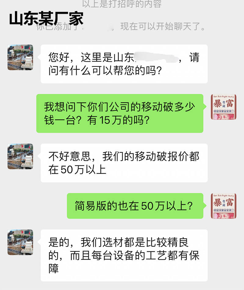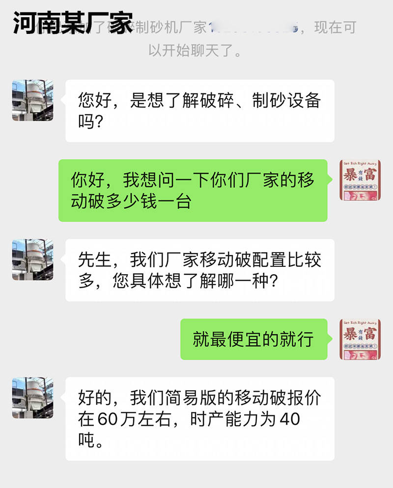经过对多个设备厂家的走访和调查,大杨得出了以下的结论:想用15万买一台质量可靠并且效率高、出料好的移动破碎机,是不太可能的;
