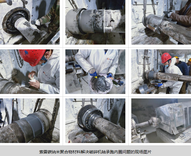 解决破碎机轴承跑内圈问题,索雷碳纳米聚合物材料修复技术的优势还是很明显的:该技术可以在现场解决破碎机轴承跑内圈问题,减少或避免了拆卸,一般情况下短短几个小时就可以完成修复,为企业节省大量人力、物力、财力;修复材料的综合力学性能优于金属,其具备良好的退让性,不具备金属疲劳磨损特性和塑性变形性,因此长期使用过程中不会产生疲劳磨损、断裂的情况,所以保证设备长期运行过程中,静配合面之间不会因为疲劳磨损而产生间隙;此外,我们强化了预测性维修,借助互联网和传感技术协助用户实施全天候在线监测、智能预警和诊断分析,及时发现并消除装备故障隐患,以防范风险、降低装备运营成本。
