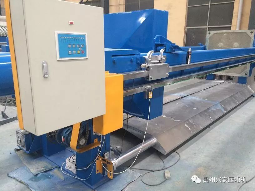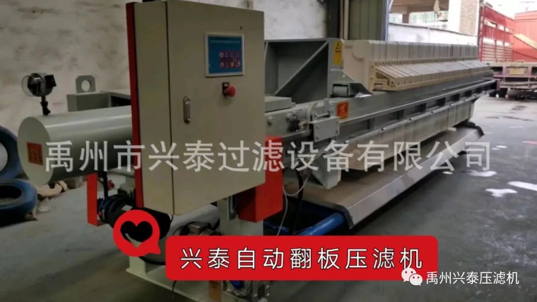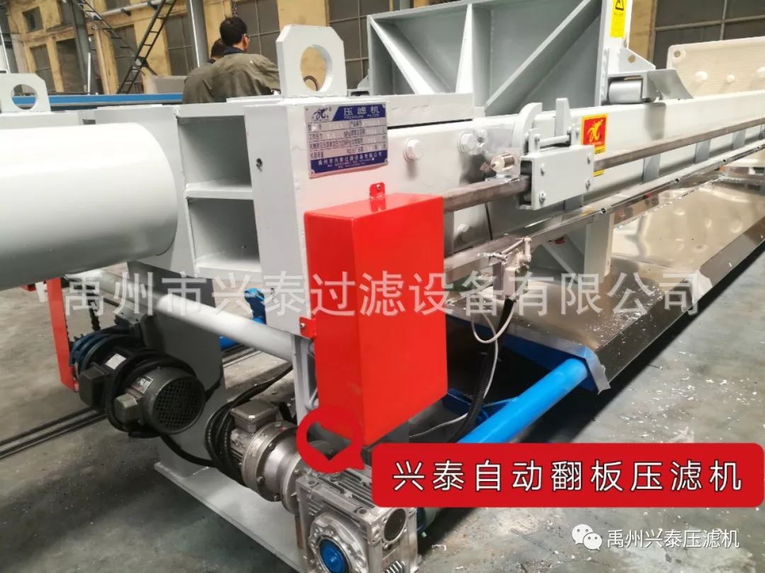 厢式自动压滤机 自动翻板压滤机 兴泰专业生产,压滤机在过滤过程中,由于滤布的毛细渗漏现象,滤板之间会有滴漏,这样即对环境造成污染,又增加了压滤机下面的储泥斗中的泥料的含水率,给操作带来很大麻烦。兴泰公司生产的自动集液翻板系统可收集滤板滴漏的液体,避免压滤机工作现场的污泥,也避免了储泥斗中的已脱水物料被侵润。在压滤机滤板下方装置了两块协调工作的翻板,在过滤过程中处于闭合状态,将滴漏的液体或滤板冲洗水导入两侧的集液槽。卸料时处于开启状态,起到导泥作用。兴泰公司自动翻板压滤机自动集液翻板系统可收集滤板滴漏的液体,避免压滤机工作现场的污染,也避免了储泥斗中的已脱水物料被浸润。
