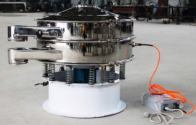 旋振筛/三次元振动筛分过滤机工作特点:* 筛分精度高,效率高,任何粉、粒、粘液类皆可适用。* 部件无死角,易有效清洗消毒。* 新型网架结构,筛网使用寿命有效,换网只需3-5分钟。* 可单层、多层筛网使用。* 体积小不占空间,移动方便,出口可以360度任意调整。* 与物料接触部分全部采用不锈钢制作。* 物料自动排出,可连续作业。* 全密闭尘不飞扬,液体不泄露,网目不堵塞,筛分可至500目,过滤可达5μm。