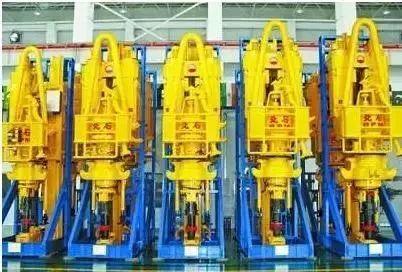 ①天井钻机,专门用于钻凿天井和溜井,一般不需进入天井操作,用牙轮钻头先钻导向孔,用盘形滚刀组成的扩孔器向上扩孔。②竖井钻机专门用于一次钻凿成井,由钻具系统、回转装置、井架、钻具提升系统和泥浆循环系统组成。③平巷掘井机,它是将机械破岩与排渣等工序结合起来并连续进掘的综合机械化设备,主要用于煤巷、软矿中的工程隧道和中等硬度以上矿岩的中平巷掘进。6、采煤机械采煤作业已由50年代的半机械化发展到80年代的综合机械化。综合机械化采煤广泛应用浅截深式双(单)滚筒联合采煤机(或刨煤机)、可弯曲刮板输送机和液压自移支架等设备,使回采工作面的破碎落煤、装煤、运输、支护等环节实现全面的综合机械化。双滚筒采煤机是落煤机械。电动机经截割部分减速机把动力传递给螺旋滚筒落煤,机器的移动靠电动机经牵引部分传动装置来实现。牵引方式基本上有两种,即锚链牵引和无锚链牵引。锚链牵引借助牵引部分的链轮与固定在运输机上的锚链啮合而实现。7、石油钻采陆地石油钻采机械。按开采工序分为钻井机械、采油机械、修井机械和维持油井高产的压裂、酸化机械。钻井机械为开发石油或天然气而钻探或打生产井的全套机械设备。石油钻井机,包括井架、绞车、动力机、泥浆循环系统、滑车装置系统、转盘、井口装置和电气控制系统。井架用于装置天车、游动滑车和大钩等,吊升其他重物上下钻台,悬挂井内钻具进行钻进。