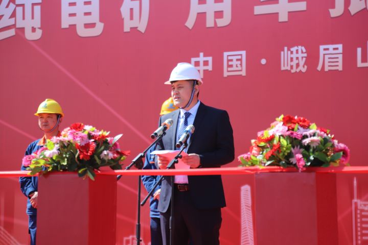 峨胜水泥集团股份有限公司总经理助理晏云华出席了本次交车仪式,他表示:在矿区内举行纯电矿用车批量交付仪式具有重要意义。这不仅代表20台纯电矿用车的批量交付的完成,也是一次现代新能源应用技术的融合交流,引领未来发展的先进思想理念的传承和发展。
