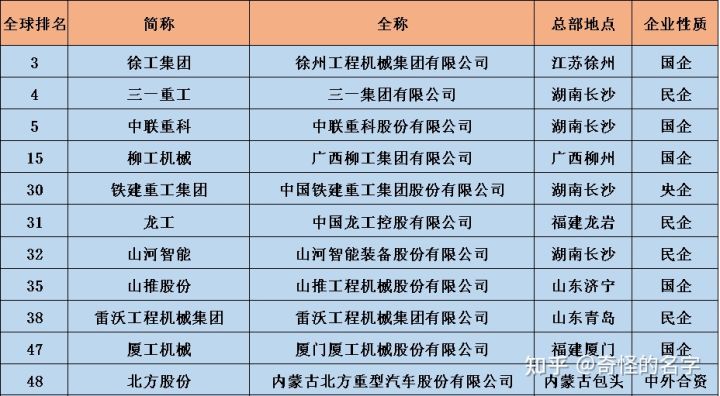 排名第一的为徐州重工,来自于江苏徐州,是全球第三的工程机械制造商,去年销售额162.52亿美元,前身为八路军鲁南第八兵工厂。