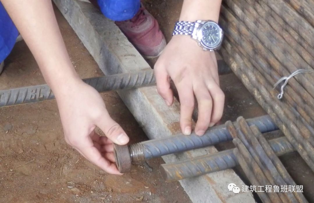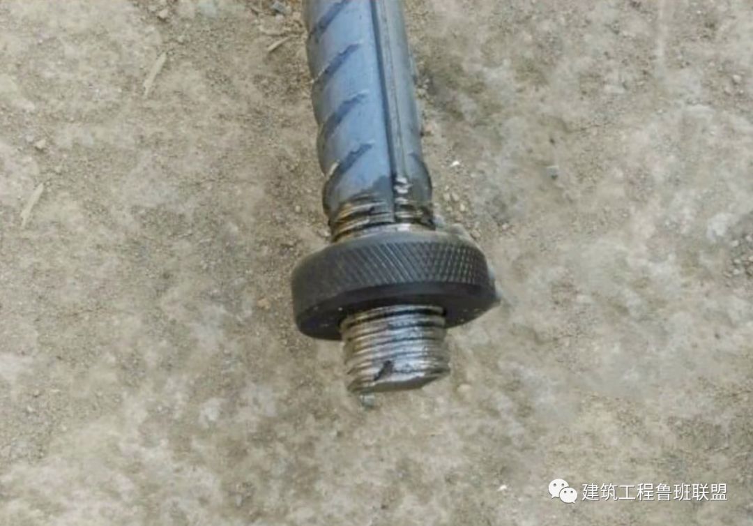 4、在丝头加工好后应当用套筒使拧一下,以保证使用质量,并套好保护帽进行保护(因为钢筋在破开氧化层后容易生锈)。