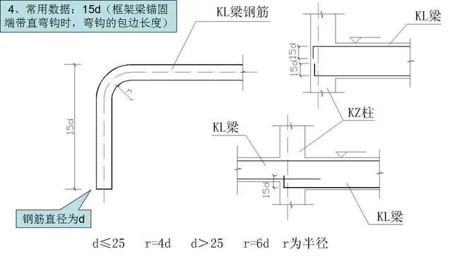 1)框架梁锚固端带直弯钩时,弯钩的包边长度。