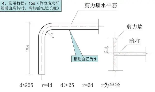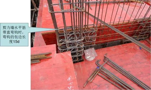 3)剪力墙水平筋带直弯钩时,弯钩的包边长度。