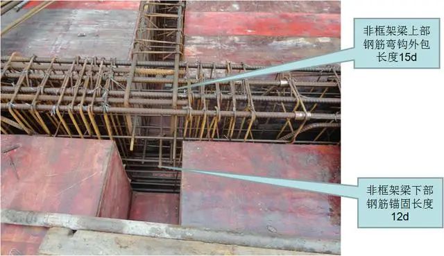 4)非框架梁(不含弧形梁)下部筋进入支座总长度。