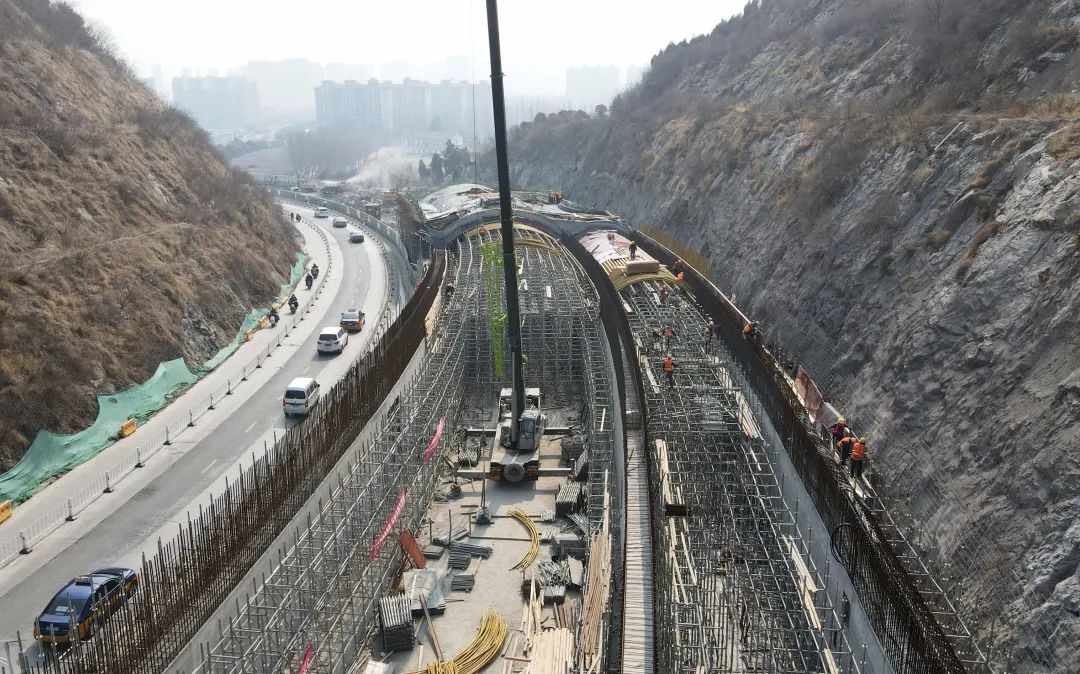 改造范围起于汉城东路交叉口,向南过现状天齐路宕口,止于军事管理区高挡墙段,改造里程约640米。其中303米为隧道两侧路基段,施工内容包含道路工程、管线工程、交通工程、照明工程等;337米为隧道段范围,隧道为城市主干道标准,双向六车道,设计时速40公里,项目洞口采用古城墙设计形式,突出九里山古战场文化历史特色。