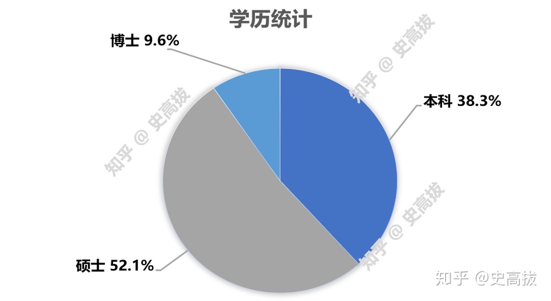 学历的分布硕士比例比较高,这一点比较出乎意料,可能和本校学习氛围比较好有关系。