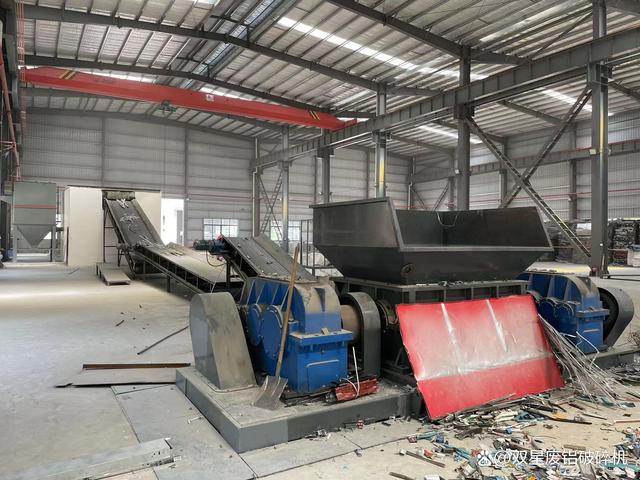 在废金属破碎中属于初级粗破设备,根据物料的不同厂家设计一条适合此物料的生产线,专门针对各种异形金属料,进料粒度高达1500mm,出料在80mm左右,由它破碎后的半成品,再通过输送机运到筛分设备中,是废金属破碎生产线中的主力设备,生产出来的金属粒度均匀产品粒型好,工作效率高。