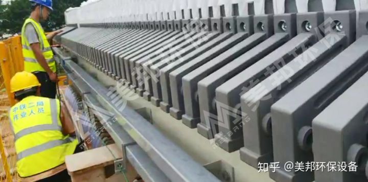 厢式压滤机的构造和工作原理与板框压滤机相似,不同之处在于滤板两侧凹进,每两块滤板组合成一厢形滤室,省去滤框,滤板中心有一圆孔悬浮液由此流入各滤室。这种过滤机适用于需求在较高压力下过滤而滤渣不需求洗濯的悬浮液。