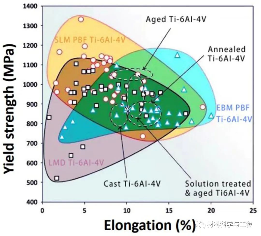 图2 增材制造和常规方法制备的Ti6Al4V的屈服强度和塑性