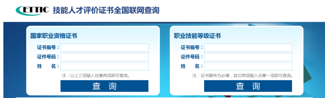 输入证件号码姓名中任意一项以及证书编号即可查询。随时随地查询,不收任何费用。