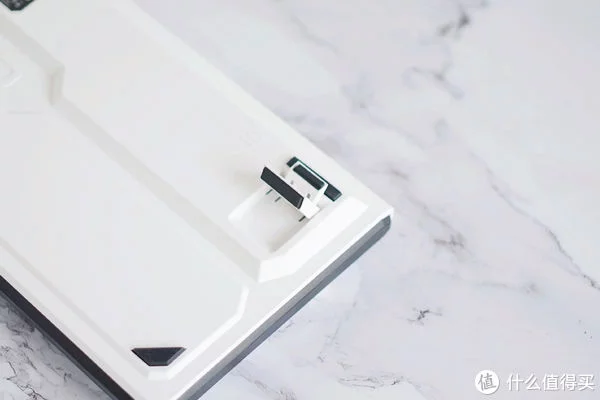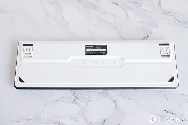 翻过来,这款杜伽K610w机械键盘的底部依然保持了统一的配色,在中间位置是大大的杜伽Logo。