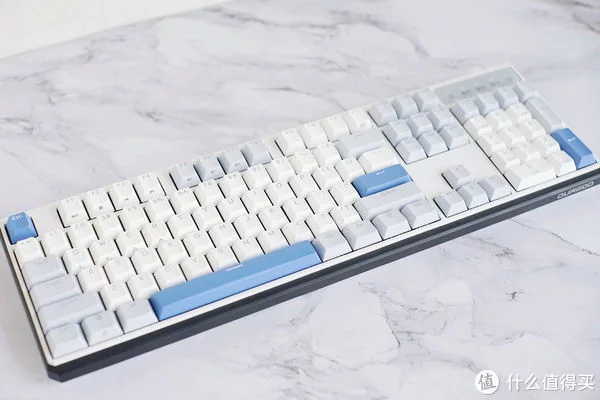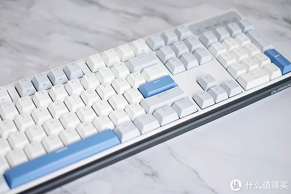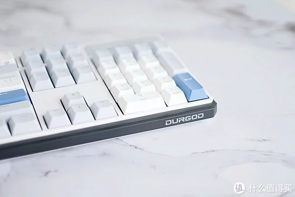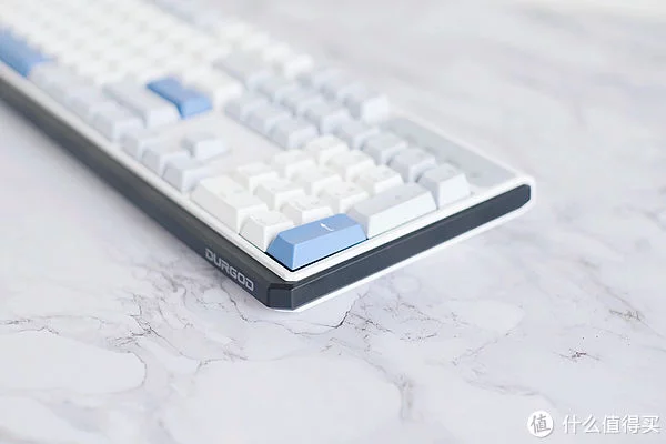 除了外壳上的设计外,这款杜伽K610w的键帽颜色也非常的漂亮。经典的白、灰让其看上显得朴素、简洁,有了GMK Uniqey的味了。
