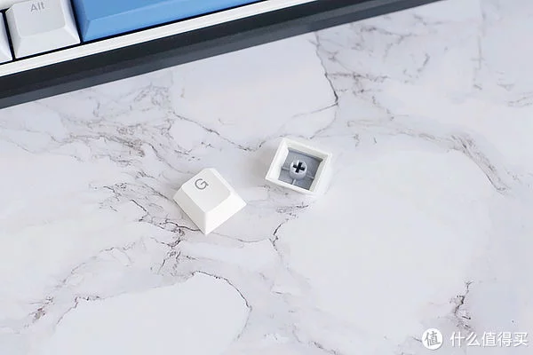 近距离观察可以发现键帽的质感还是相当不错的,字符边缘清晰,端面光滑,手感细腻,水口位置也进行了处理。