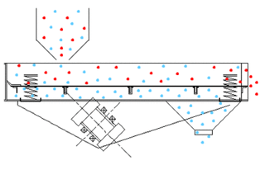 直线振动筛分机工作原理是两台振动机的转轴相对于筛面有一个倾角。在激振力和物料自重的合力作用下,物料在筛面上被抛起并向前跳跃,沿直线向前运动,大量不同粒度的破碎物料和混合的粗细颗粒进入筛面后,只有一部分颗粒与筛面接触,由于筛箱的振动,使筛上的料层松动,从而除去大颗粒中存在的空隙进一步膨胀,小颗粒趁机通过缝隙,转移到下层,因为小颗粒之间的间隙很小,大颗粒不能通过,所以原本无序排列的颗粒分离,即按粒径分层,形成小颗粒在下,粗颗粒在上的排列规律,从而达到对物料进行筛分分级的目的。