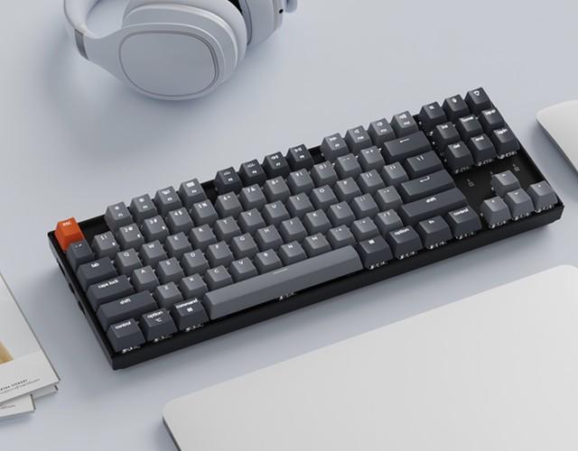 首先给大家推荐这款京东京造的K8机械键盘,现如今售价仅为349元。这款机械键盘整体采用了非常简约的设计风格,黑灰的配色具有较高的辨识度。同时这款键盘采用了87按键的紧凑设计,去掉了并不常用的数字按键,能最大程度节省桌面的空间。不仅如此,这款京东京造的机械键盘和Mac的适配程度更高,拥有和Mac一样的多媒体按键,日常使用起来会更加方便,大大提升了办公的效率。同时这款键盘支持Mac和Windows系统任意切换,能够满足不同用户的使用需求。