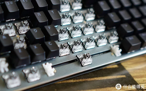 雷柏键盘的大键卫使用星轴,空格左右触发均衡,但轴芯会有些摇晃,Shift大键位与空格声音上有些差异,空格能明显听到钢丝的杂音,V520RGB合金版在大键位上仍需步调教提升。