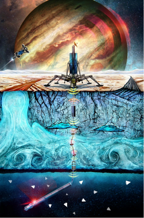 美国宇航局的科学家认为,木卫二上的外星生命将是最明显的。在木卫二的冰壳里,有海洋生物可以食用的营养物质,微生物甚至更大的生物可能会喜欢吃。科学家针对木卫二冰壳下的海洋探索任务,提出了一种微型传感游泳机器人。科学家们需要找到一条途径,穿过覆盖海洋的10公里厚的冰层。