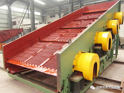 单轴振动筛主体由筛箱、激振器、吊挂装置、传动装置等组成。下面给大家讲解矿用单轴振动筛的结构特征:(1)筛箱:主要由筛框和筛网组成。筛框是组焊件,主要有侧板、横梁、入料口组成,侧板为整块钢板,横梁为无缝钢管;筛网分上、下两层。(2)激振器:激振器装设在筛箱的两侧,主要由偏心轴、皮带轮和偏心块组成,筛子的激振力是由偏心轴惯性产生的,偏心轴的两端分别安装一个皮带轮,偏心块安装在皮带轮上,激振器通过轴承固定在筛箱侧板上。(3)吊挂装置:采用钢丝绳、隔振弹簧和防摆配重。(4)传动装置:本机采用Y型电机,安装在筛体的左侧或右侧,通过三角带带动皮带轮旋转。关于矿用单轴振动筛的工作原理: