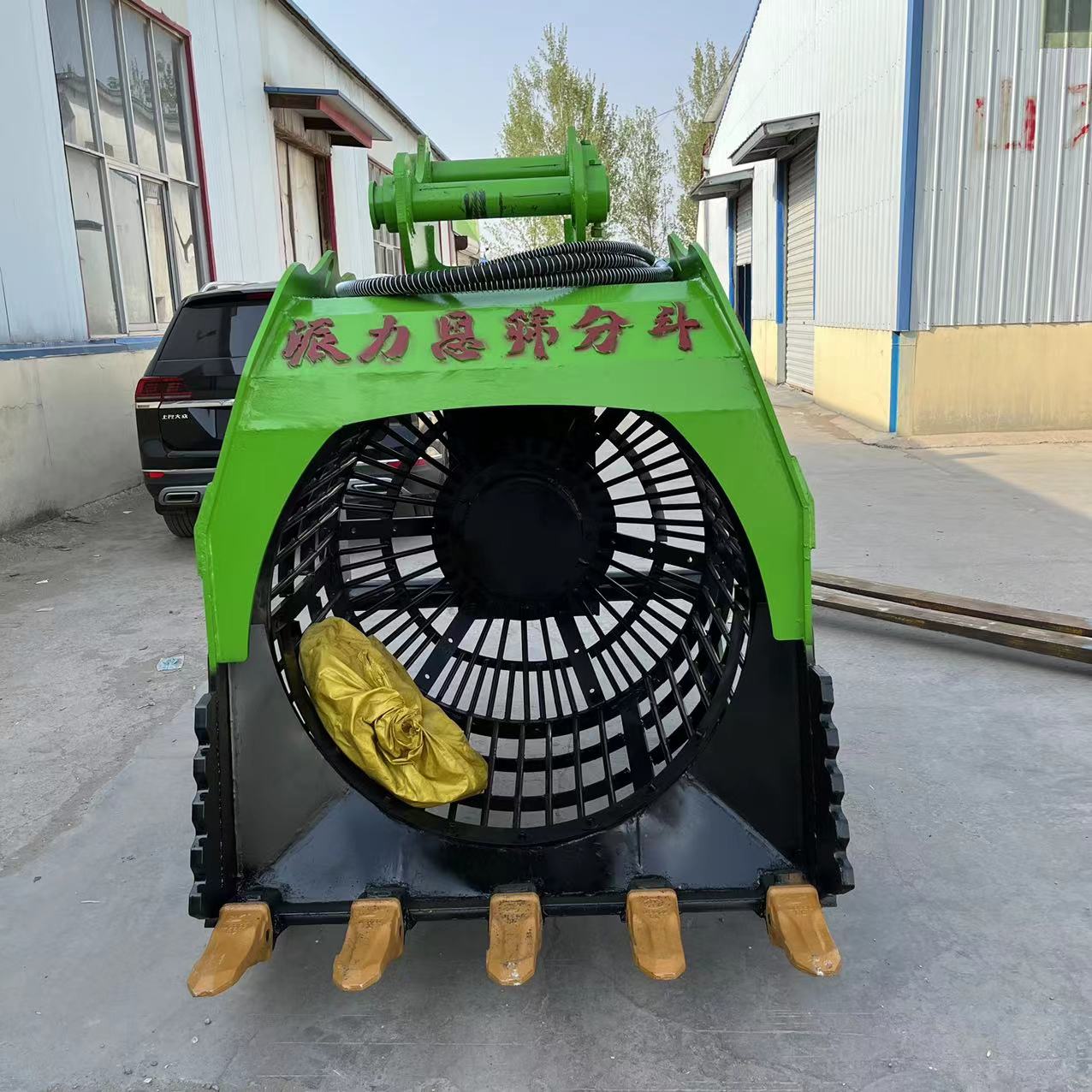 挖掘机筛分斗是安装在挖机上面筛分的一款设备,它可以用来沙石分离、管道回填、河沙卵石清洗、土石分离、建筑垃圾筛分等。液压马达驱动,360度旋转,干筛水洗均可。适用范围广,网格大小支持定制,筛网可以更换,移动方便。I855*345IZZ7