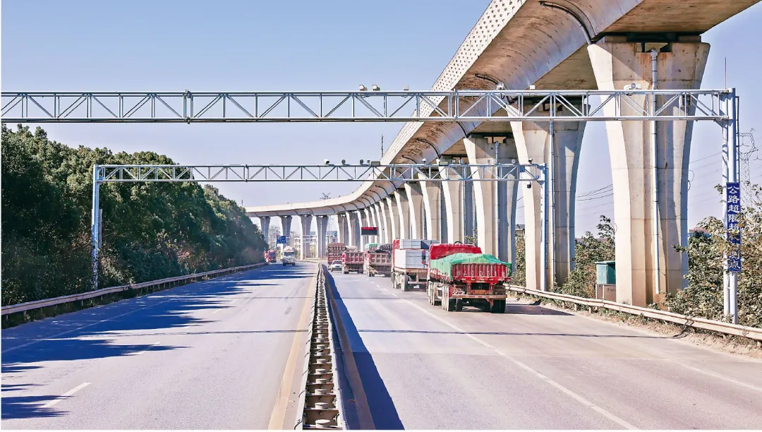 武湖治超站位于汉施公路上的不停车超限检测系统让百吨王车流量占比下降到0.058%。