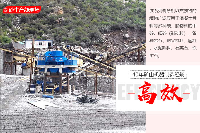 制砂机适用于软、中硬和极硬物料的破碎、整形,一般作为破碎制砂生产线的最后一道工序,进料粒度为35~60mm。