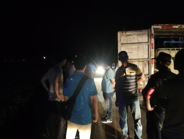 广州市生态环境局增城区分局迅速安排执法人员到现场走访排查,并蹲点值守,监控所有进出的嫌疑车辆。在龙角村田间,执法人员对肇事货车进行前后截击,控制住正在田间渠道倾倒液体的肇事者韩某,并查获货车车厢里4个装着废液的大号方形储蓄桶、排放设备、车辆行驶证及1本记录车载液体时间及数量的记录本。当晚,执法人员会同增城区公安局食药环侦大队与荔城环保所连夜对环境违法肇事者韩某进行询问调查。在持续近20小时的询问过程中,韩某的表现十分不配合,不断变更口供,对执法人员的取证工作造成阻碍。执法人员以货车驾驶室中查获的车辆行驶证及记录本为突破口,初步排查出涉嫌废水源自某食品厂。最终,韩某由增城区公安分局进行行政拘留并作进一步调查。广州市生态环境局增城区分局依法对涉事食品厂进行查处。